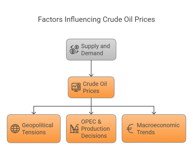 - Supply and Demand: Shifts in production and consumption impact crude oil prices. (Investopedia)