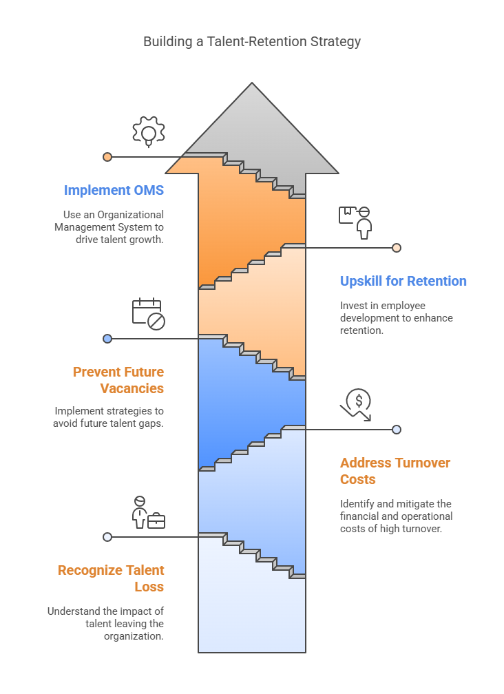 OMS tackles retention by creating a culture of growth and engagement. It offers clear role growth pathways, skill recognition programs to validate expertise, and training that builds confidence through mastery. This approach boosts employee engagement, preserves critical skills, stabilizes operations, and cuts replacement costs.