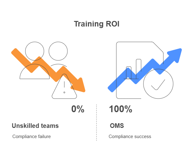 OMS quantifies avoidable losses by modeling cost-per-error scenarios, comparing trained vs. untrained teams, and projecting long-term savings from targeted upskilling investments.